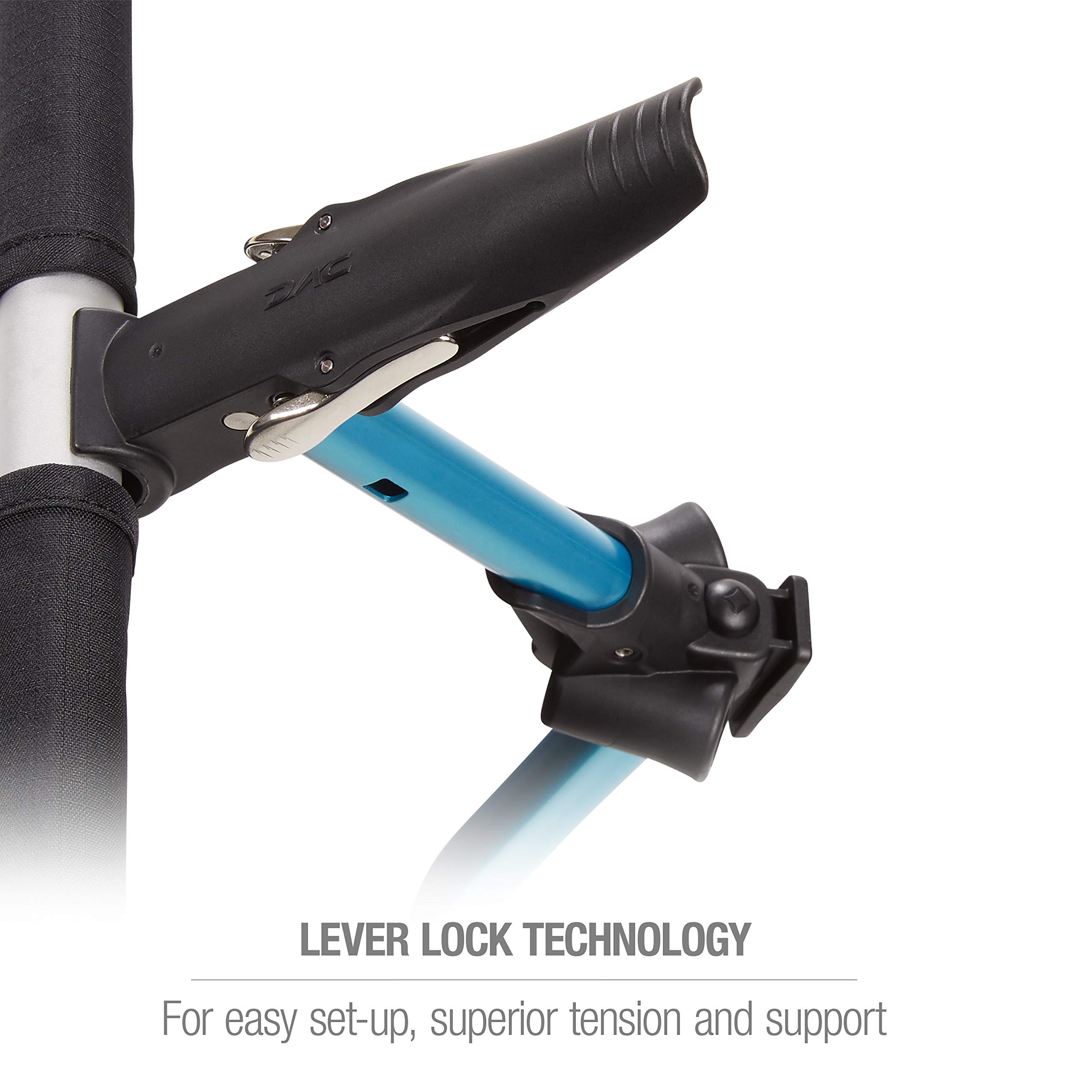 - Quick setup with a single internal bungee cord that self assembles the poles; height of 7 inches, or 15 inches with leg extenders (sold separately)