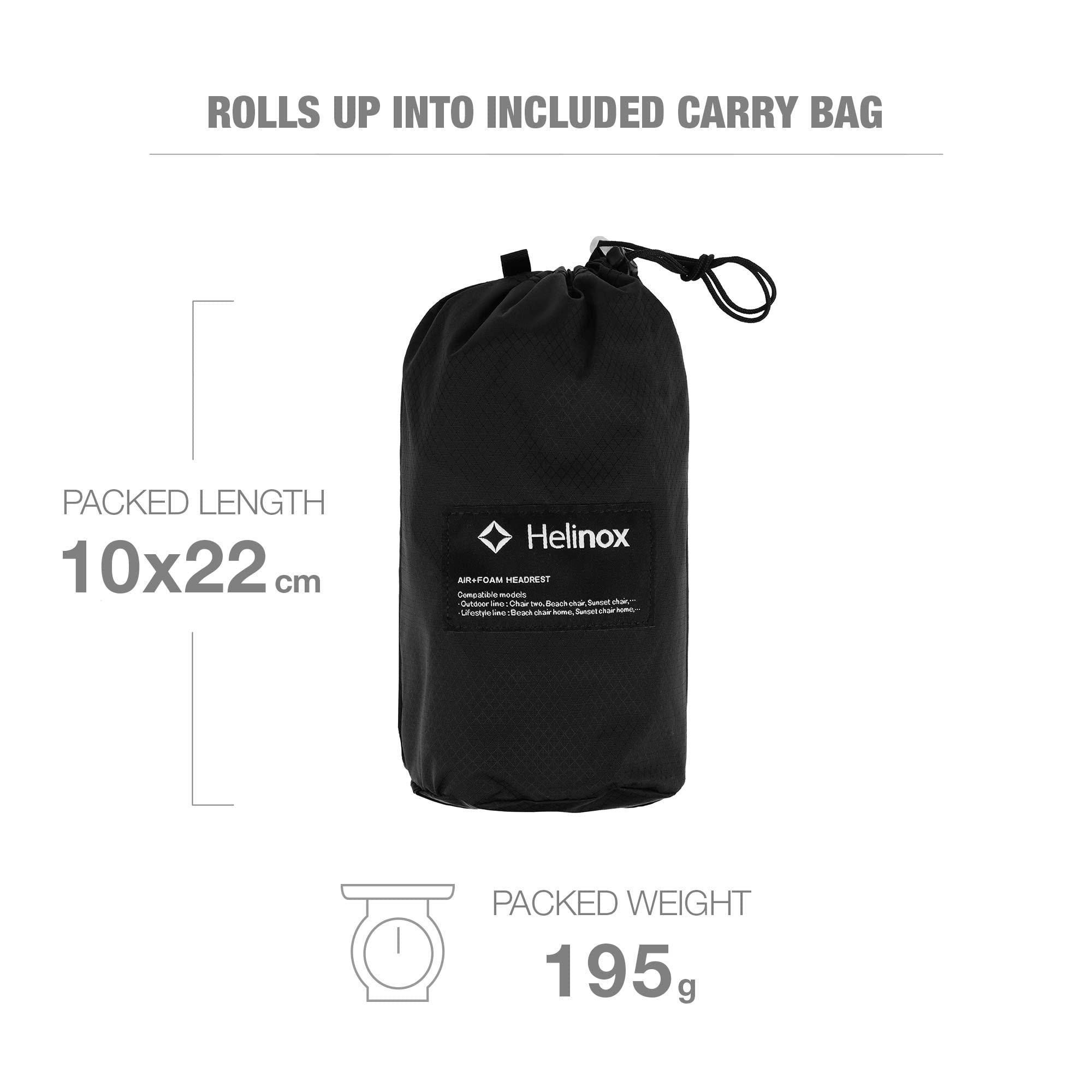 - Inflatable foam reinforced pillow headrest for Helinox camping chairs, provides neck and head support