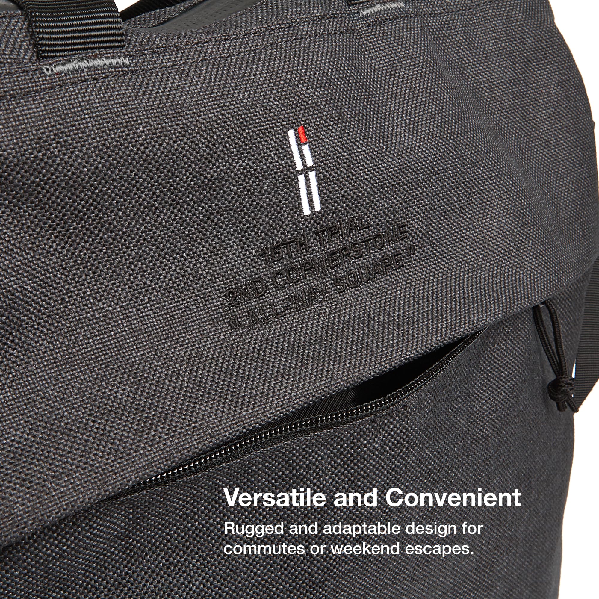 - Innovative carry & access. Top grab handles. Shoulder straps are removable for versatility. Zip-top opening with two large compartments and internal zip pocket. Flat front zip pocket.